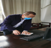 (外院党委书记陈丰杰带班办公室区域消毒)