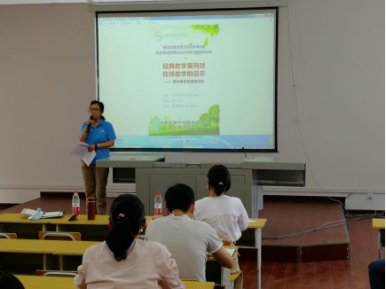 首先,袁在成做了本学期在线教学工作总结报告,之后,英语、日语、大学英语三位教师代表分享了她们本学期线上教学的案例;黄雯老师做了题为“防疫上课两不误,网络教学结硕果”的主题发言;金小梅老师做了“挖掘潜能,教学相长”主题报告;蔡欣言老师分享了初级日语(下)在线教学闯关模式。与会老师对三位老师的经典教学案例做了热烈讨论,纷纷表示深受启发,受益匪浅。参加会议的其他教师也积极参与研讨并发言。