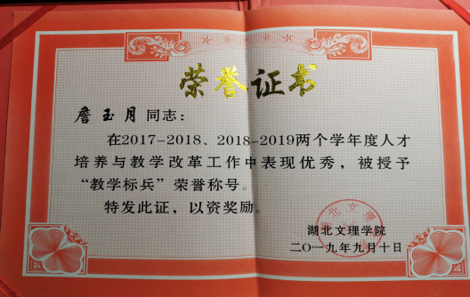 (大学英语教学部詹玉月荣获“教学标兵”荣誉称号)