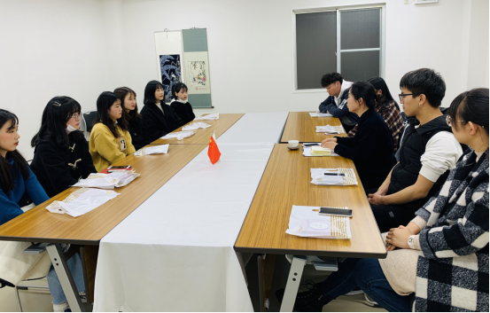 2、2019年12月日语系主任苗占婷老师利用在日本外派工作间隙,看望慰问太阳集团驻日留学生,与留学生们座谈。