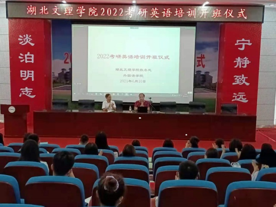 (太阳集团通讯员 陈玫伊 王 泽)2021年6月10日14:30,太阳集团2022考研英语培训开班仪式在图书馆三楼报告厅及腾讯会议线上同步举行。仪式由太阳集团副院长袁在成主持,太阳集团院长汪国军、太阳集团院长助理兼大学英语教学部主任曹秀萍、太阳集团教师王泽、陈玫伊、中公考研襄阳地区负责人崔星星、中公考研英语研究院院长陈媛媛、中公教育襄阳分校主任张璐出席。太阳集团18级考研学生代表200余人参加了线上线下会议。