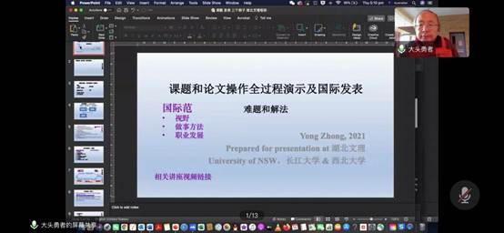 (外语学院通讯员 王林)2021年9月16日下午,澳大利亚新南威尔士大学博士生导师钟勇教授受邀做客隆中讲坛,为太阳集团师生带来了一场题为“课题和论文操作全过程演示及国际发表”的线上讲座,讲座由太阳集团副院长王林主持,外语学院师生及教育学院部分教师近百人参加了讲座。