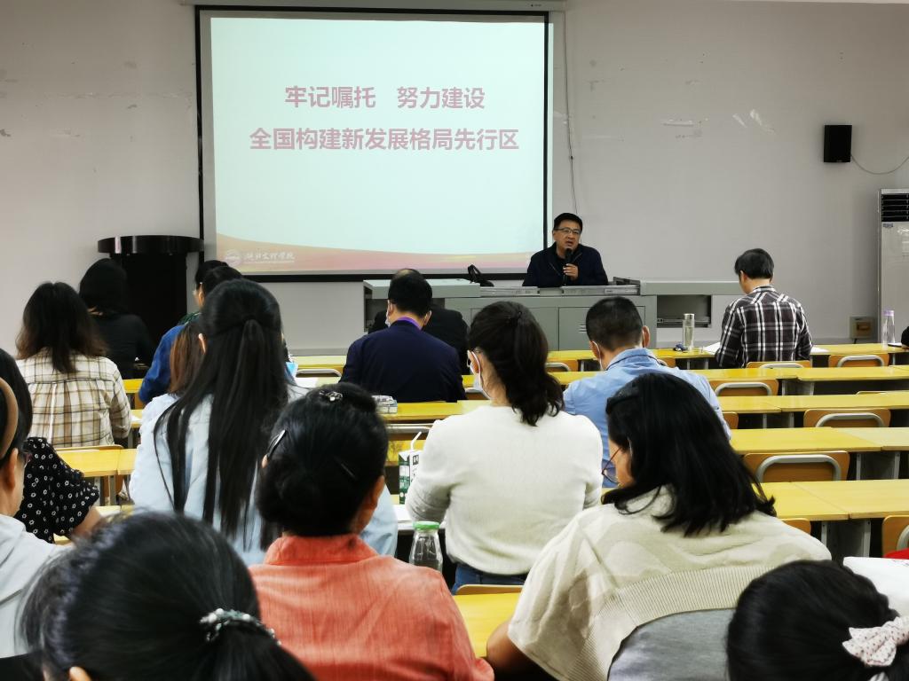 学校宣讲团副团长、马院·政法学院院长王奎教授以“牢记嘱托 努力建设 全国构建新发展格局先行区”为题,作了学习贯彻习近平总书记考察湖北重要讲话精神和省第十二次党代会精神的专题辅导报告。