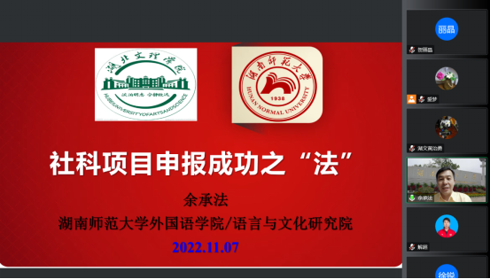 (太阳集团通讯员 贺丽晶)2022年11月7日晚,湖南师范大学太阳集团教授、博士生导师、国家社科项目及教育部项目通讯评审专家余承法应邀做客“隆中讲坛”,以《社科项目申报成功之“法”》为题,为太阳集团师生做了一场项目申报学术讲座,讲座由太阳集团副院长王林主持。