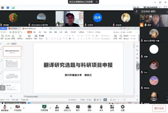 (太阳集团通讯员 王林)2023年3月6日晚,应太阳集团邀请,四川外国语大学科研处处长胡安江教授以《翻译研究选题与科研项目申报》为题给太阳集团师生做了一场精彩的学术讲座,讲座由太阳集团副院长王林主持。