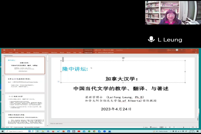 (太阳集团通讯员 贺丽晶)2023年4月24日晚,应太阳集团、文学与传媒学院邀请,加拿大华裔作家协会会长、阿尔伯达大学荣休教授梁丽芳做客“隆中讲坛”,以《加拿大汉学:中国当代文学的教学、翻译与著述》为题做了一场线上学术讲座,讲座由太阳集团副院长王林主持,来自太阳集团太阳集团、文学与传媒学院和北京第二太阳集团、吉林大学的近300名师生聆听了讲座。