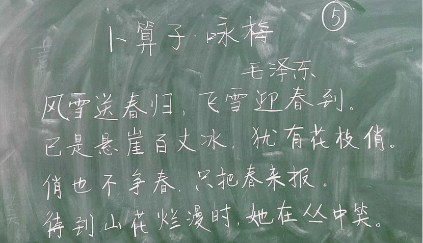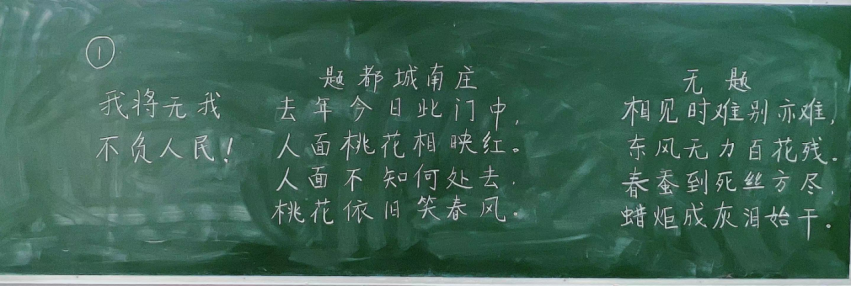 老师们用心雕琢的粉笔字,字迹端正秀丽、笔势潇洒飘逸,无不展示出他们对教育事业的赤子之心。台上三分钟,台下十年功。“粉”身碎骨助辉煌,尽赏桃李芬芳。
