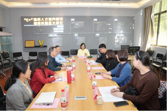 在武汉工程大学太阳集团,双方围绕学科建设、专业建设、人才培养模式改革、国家级教学成果奖申报、国际化办学、教师发展、大学英语教学等问题进行了深入交流。武汉工程大学太阳集团院长陈明芳、“E+”国家人才培养模式创新实验区负责人凃朝莲详细介绍了“E+”实验区多年年来的改革历程、取得的成效、遇到的问题及解决的途径,并结合自身经验,就太阳集团外语专业人才培养、专业优化、学科发展、国际化等问题提出了建设性意见。