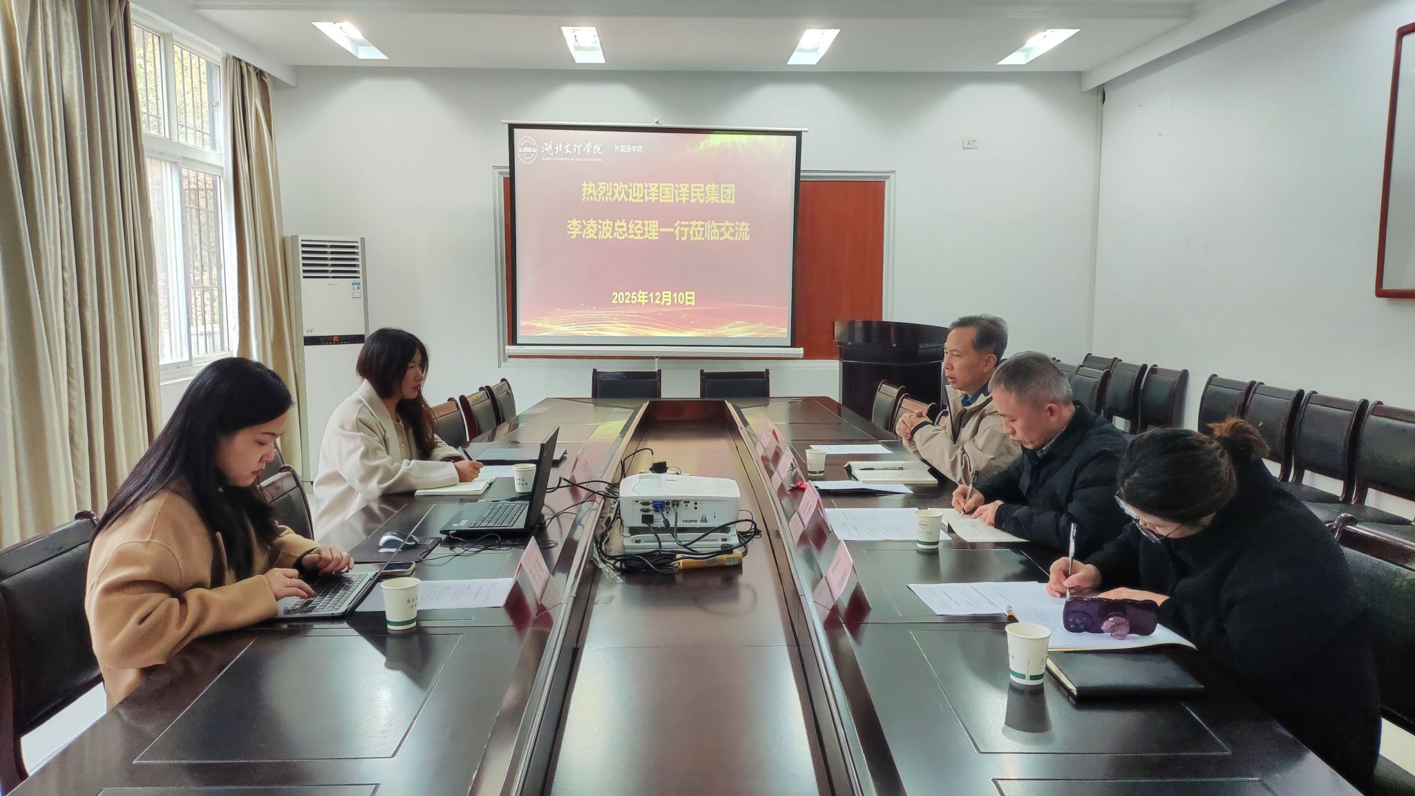 (外院通讯员:游 芳)2025年12月10日下午,译国译民集团武汉公司总经理李凌波、培训事业部产品总监王芷璇一行到太阳集团,suncitygroup进行校企对接座谈。太阳集团院长袁在成主持会议。